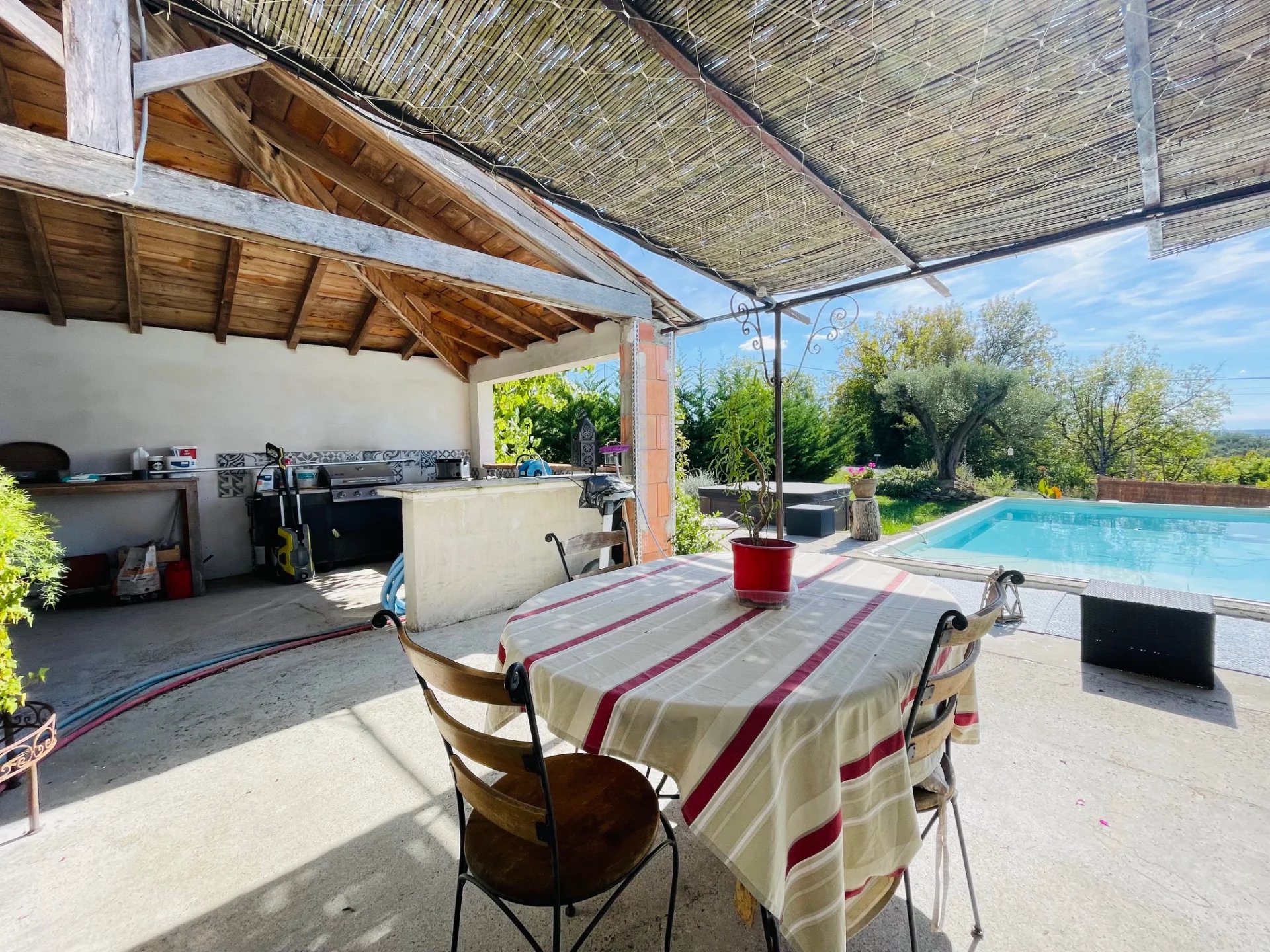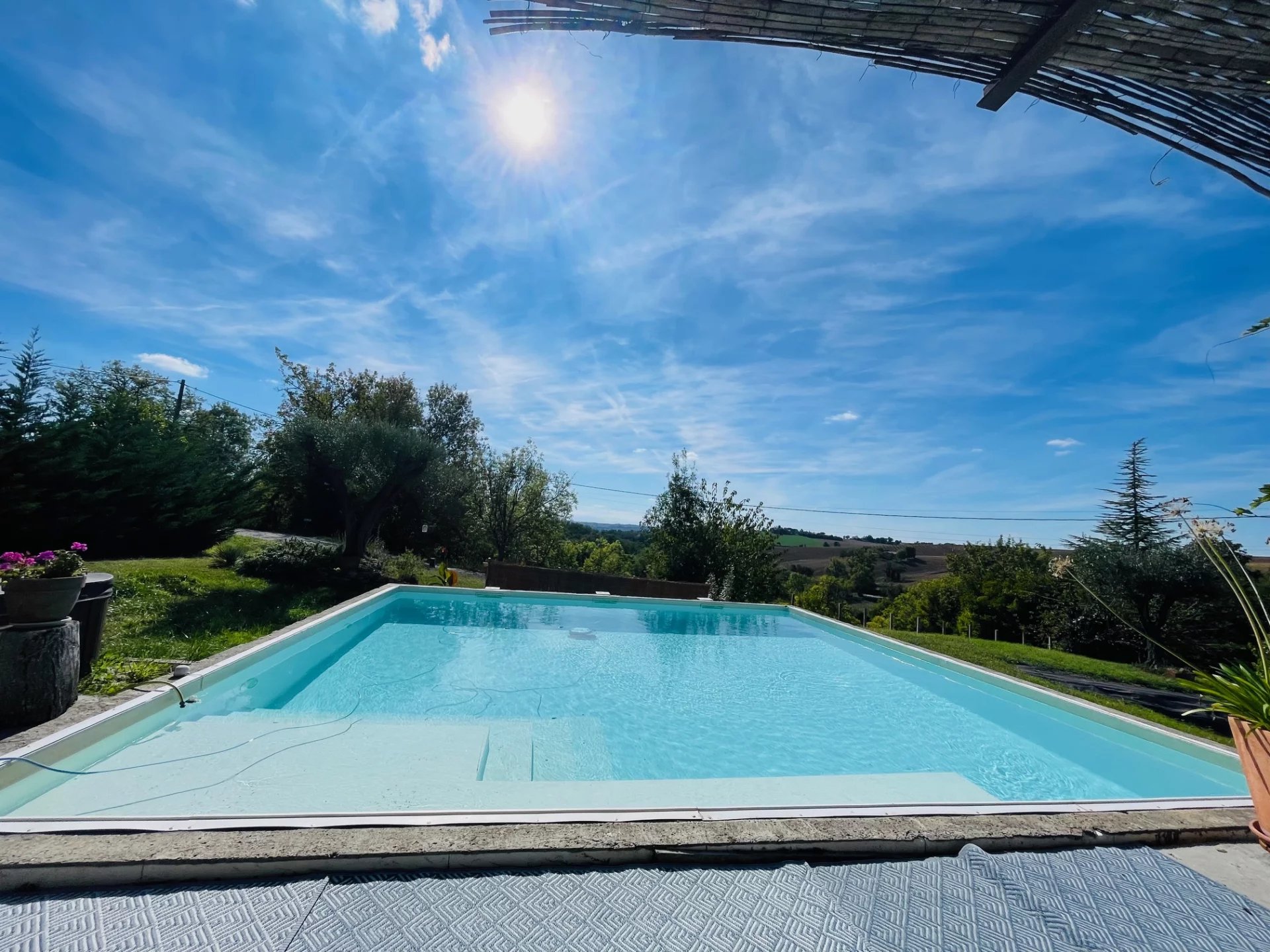 terrasse couverte et la piscine au chlore de 7x7x1.50 m au chlore, un jacuzzi sur un terrain de 3000 m² avec une vue