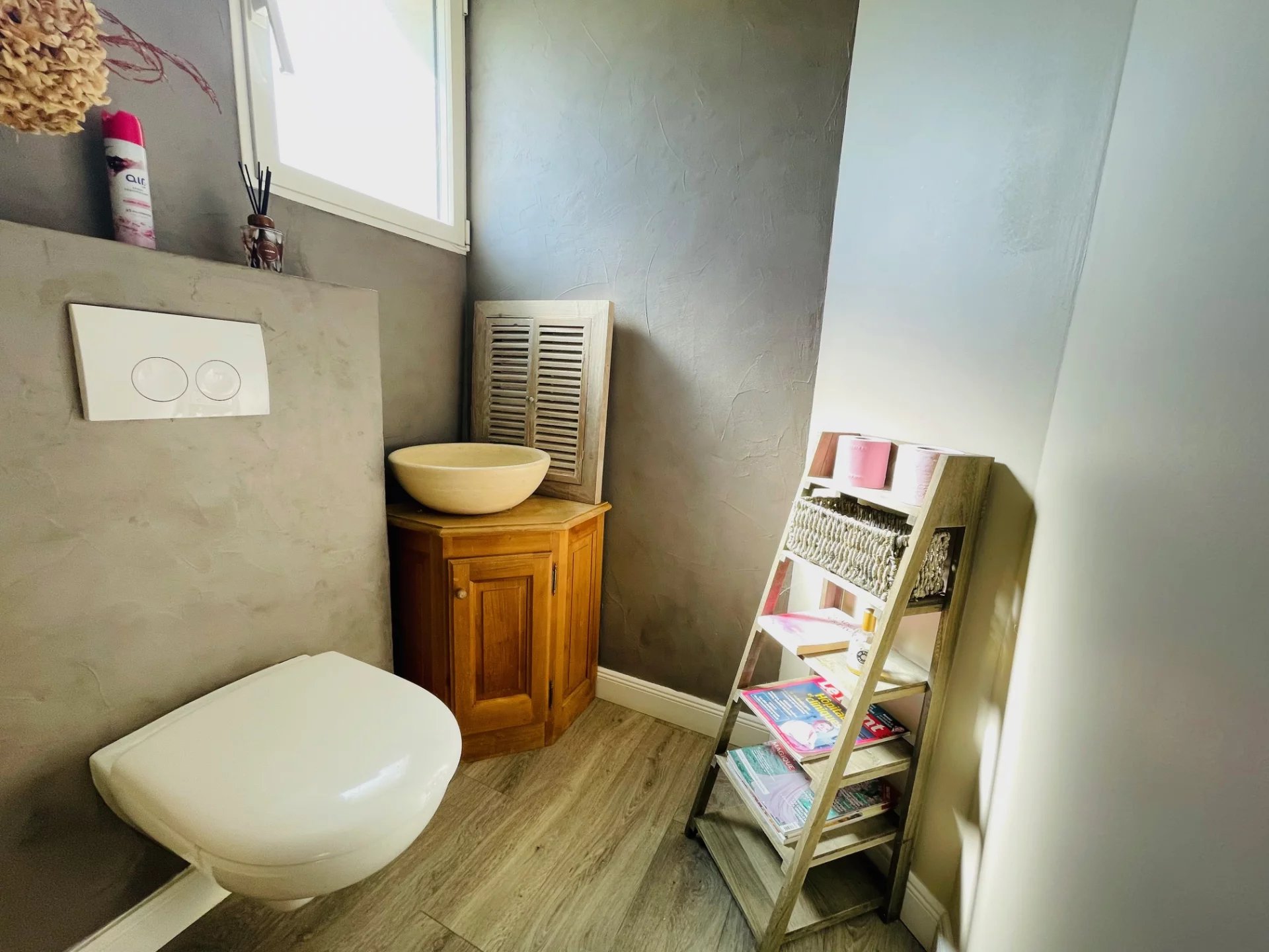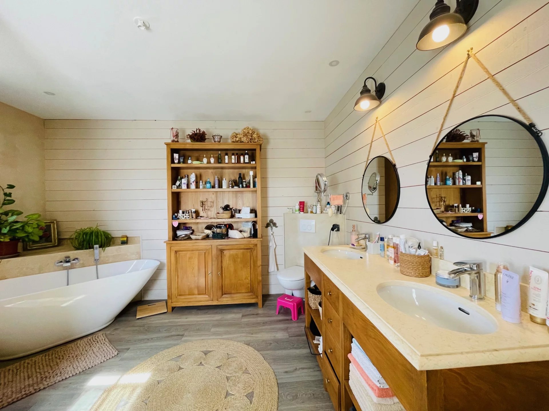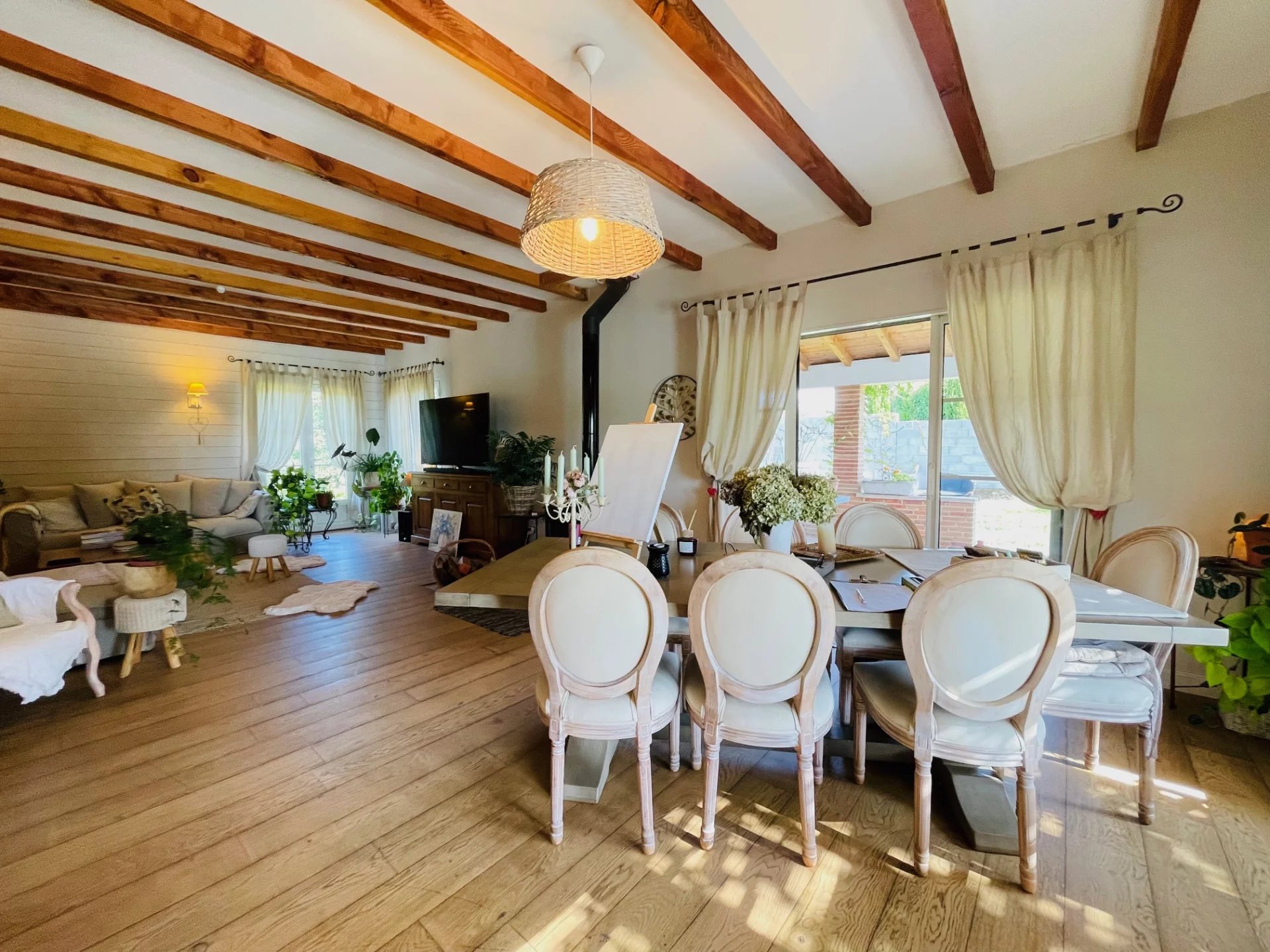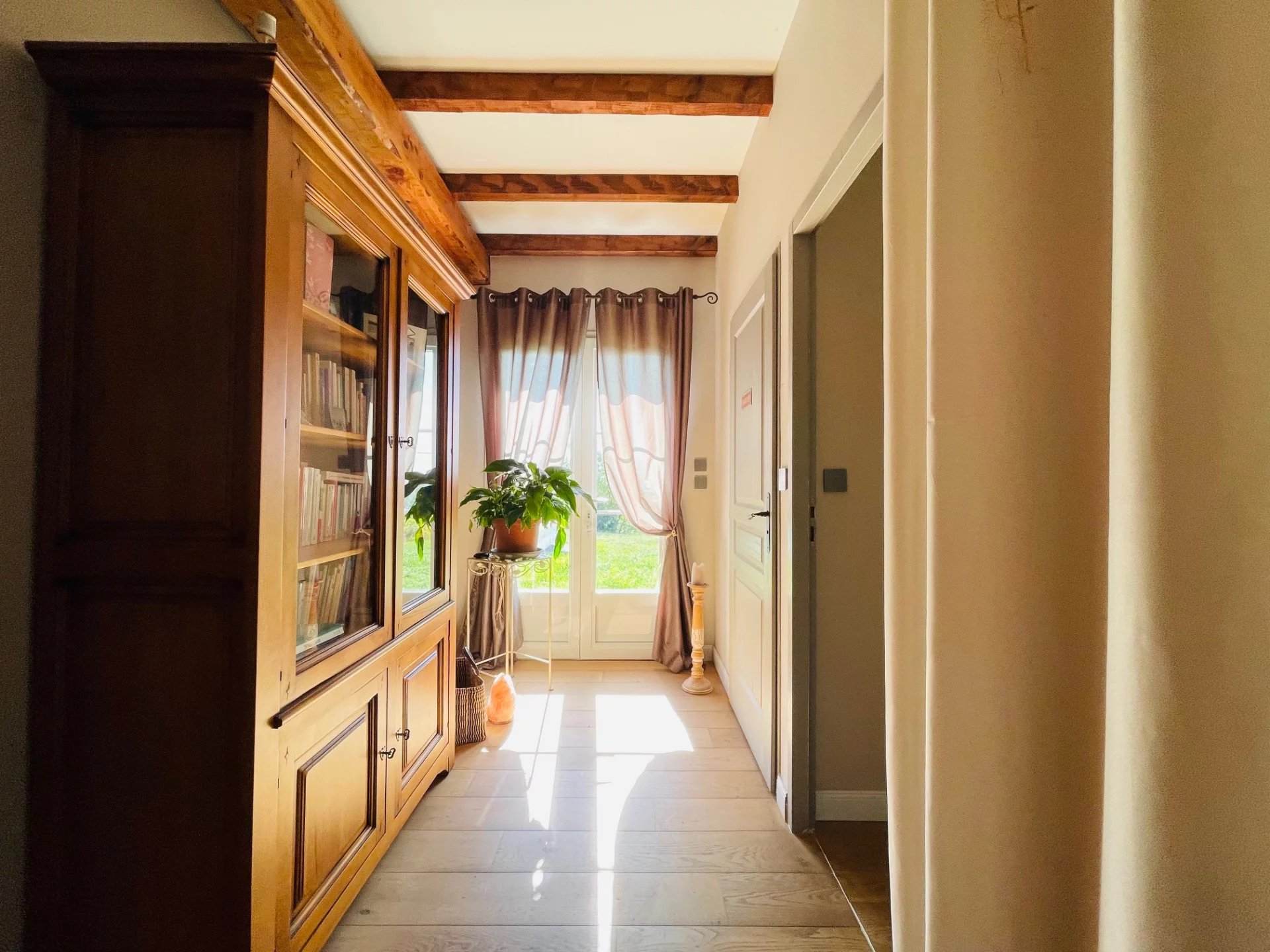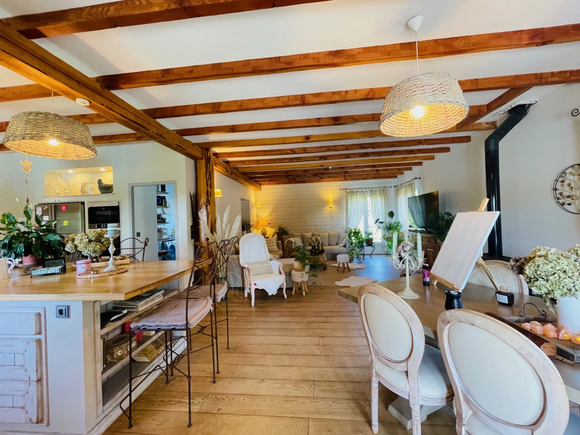 Maison cossue, avec beaucoup de cachet et de belles prestations : PAC air/eau dans le plafond, parquet en chêne massif, belle hauteur sous plafond, poutres apparentes, plan de travail massif, domotique, portails motorisés, etc...Décennale et dommage ouvrage.